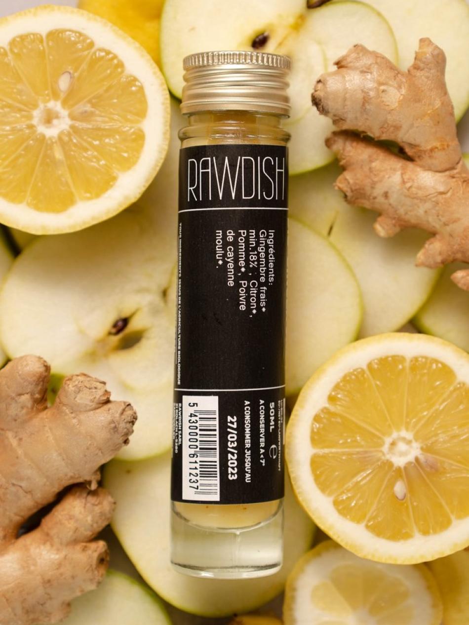 Organic cold-press shot: ginger root*, lemon, cayenne pepper.