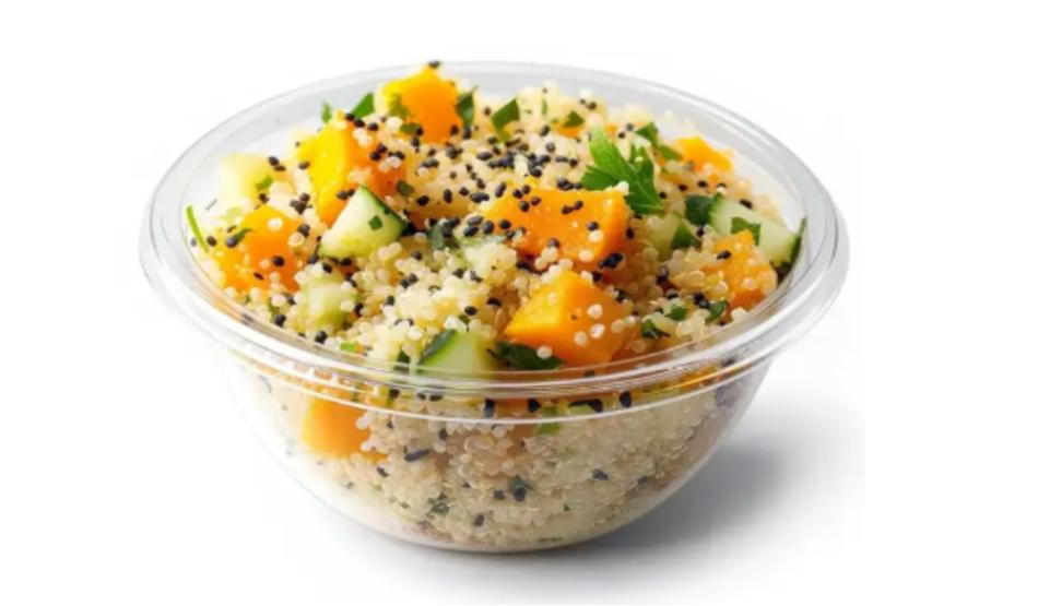 Gerösteter Butternusskürbis 45,53 %, Quinoa 29,70 %, Rettich, Trauben, Sellerie, Grünkohl 3,18 %, Rapsöl, Sushi-Essig (Zucker, Branntweinessig, Wasser, Reisessig, Salz, Glukose-Fruktose-Sirup, Rohrmelasse), Sonnenblumenkerne, Sesamsamen, Salz, Kreuzkümmel. Kann Spuren von Gluten, Nüssen, Eiern, Fisch, Senf, Erdnüssen und Soja enthalten.