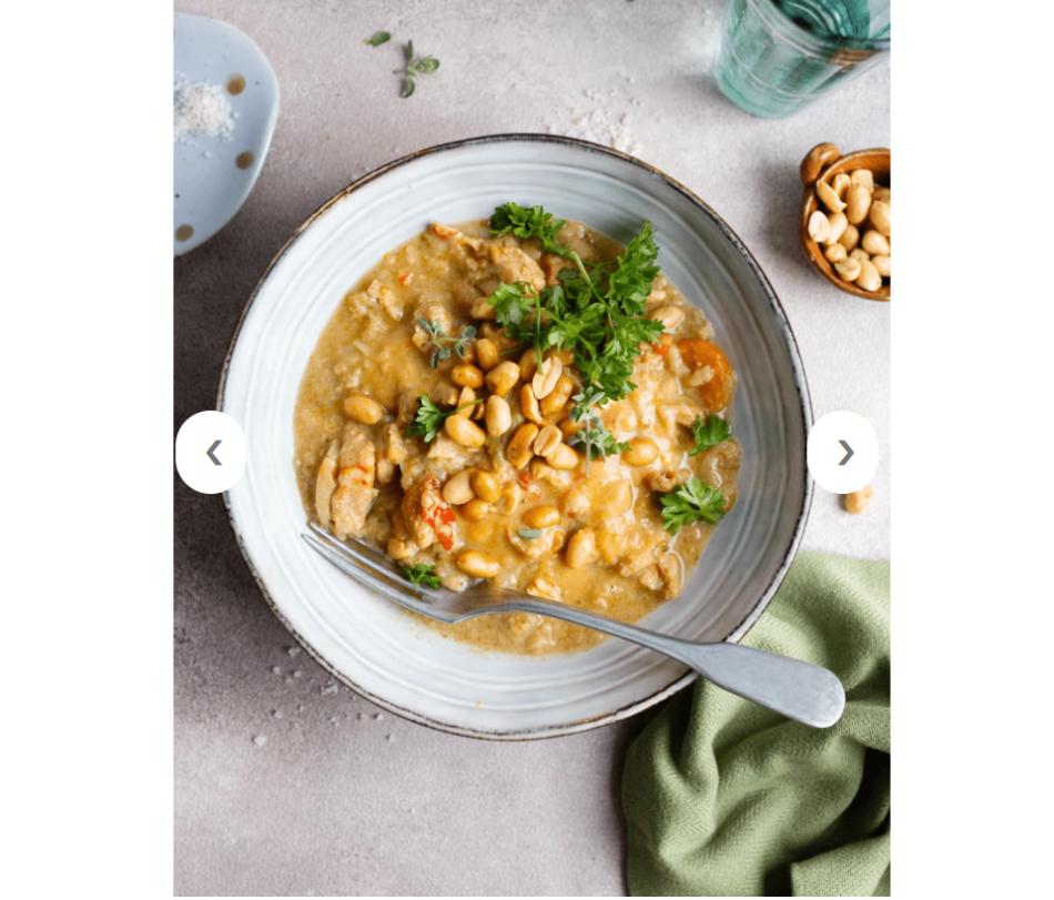 Hähnchenfleisch gebraten 26% (Hähnchenbrustfilet 94%, Rapsöl, Speisesalz), Trinkwasser, Kokosnussmilch 19% (Kokosnussextrakt, Wasser), Brokkoli 6%, Karotten, Zwiebeln, Paprika, Kichererbsen 2%, Maisstärke, Ingwer, Branntweinessig, Zitronensaft, Rapsöl, Chili, Zitronengras, Knoblauch, Schalotten, Speisesalz, Sonnenblumenöl, Gewürze, Kräuter.