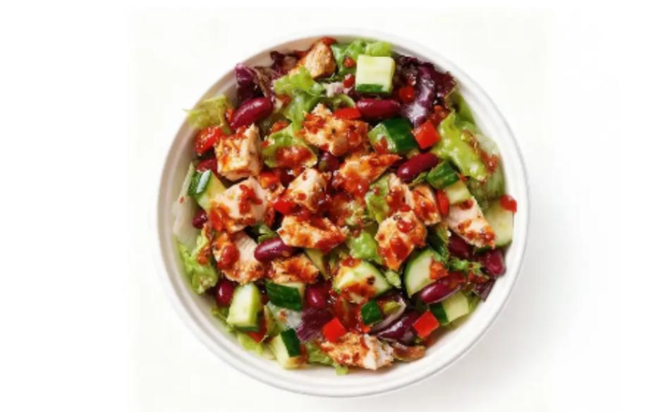 Mexikanische Mischung 44% (Gurke, rote Bohnen, rote Paprika, Gewürze (SELLERIE, SOJA)), FR Hähnchenfilet 28% (Hähnchenfilet, Salz, natürliches Aroma, Maisstärke, Dextrose), Salat Kann Spuren von Gluten, Sesam, Nüssen, Ei, Fisch, Erdnusssenf enthalten