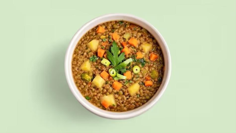 Linsensuppe mit Karotten und Kartoffeln – Glutenfrei. Für die ideale Temperatur empfehlen wir, das Gericht 2–3 Minuten in der Mikrowelle zu erhitzen.