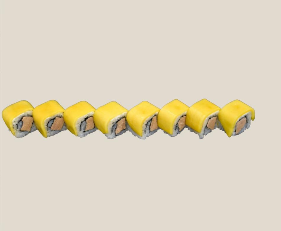 Mango, Foie gras Käse. Gratis: 1 salzige Sojasauce, 1 süße Sojasauce, 1 Ingwer, 1 Wasabi.