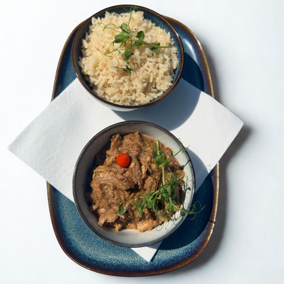 Sliced ​​Pork with Mustard and Rice