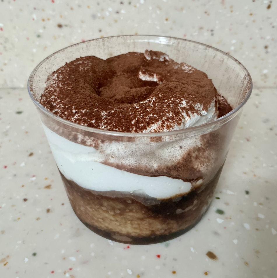 Kuchen, Kaffee, Kaffeesahne, Milchschaum, Kakaopulver