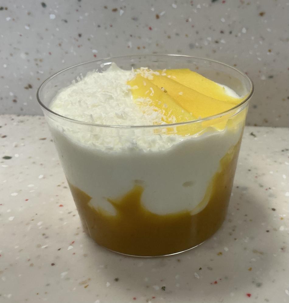 Mangocoulis, griechischer Joghurt, Mango, Kokosnuss