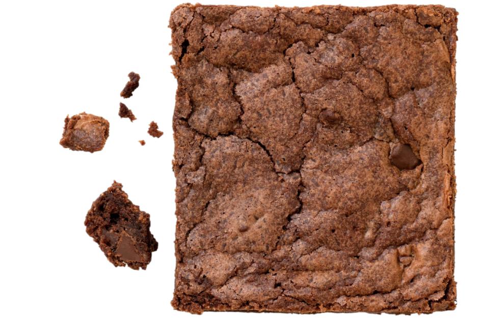 Glutenfreier Brownie, serviert mit Cashewcreme und Himbeersauce. Enthält: Mandeln.