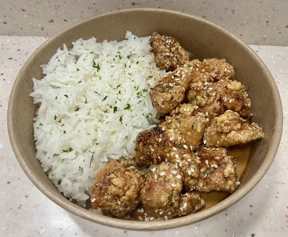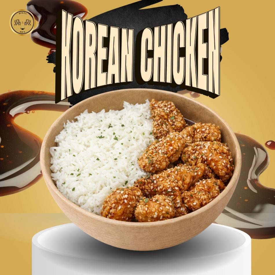 Duftreis, gebratenes mariniertes Hähnchen, Dakganjeong-Sauce