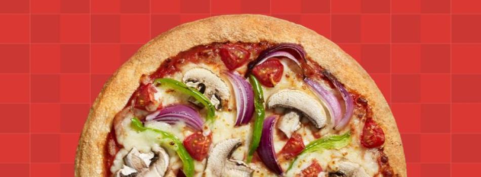 Tomatensauce mit Kräutern, gegrillte Paprika, gegrillte Aubergine, gegrillte Zucchini, gegrillte Zwiebel, Babyspinat, Champignons, Kirschtomaten, Mozzarellakugeln, Mozzarella