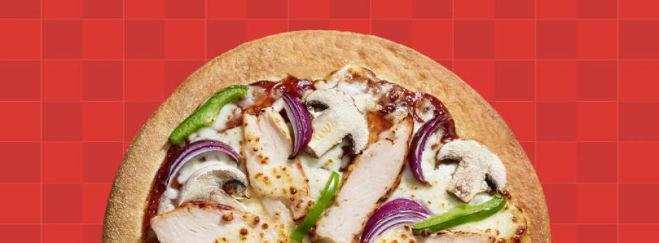 Barbecue-Sauce, Brathähnchen, Champignons, grüne Paprika, rote Zwiebel, Mozzarella