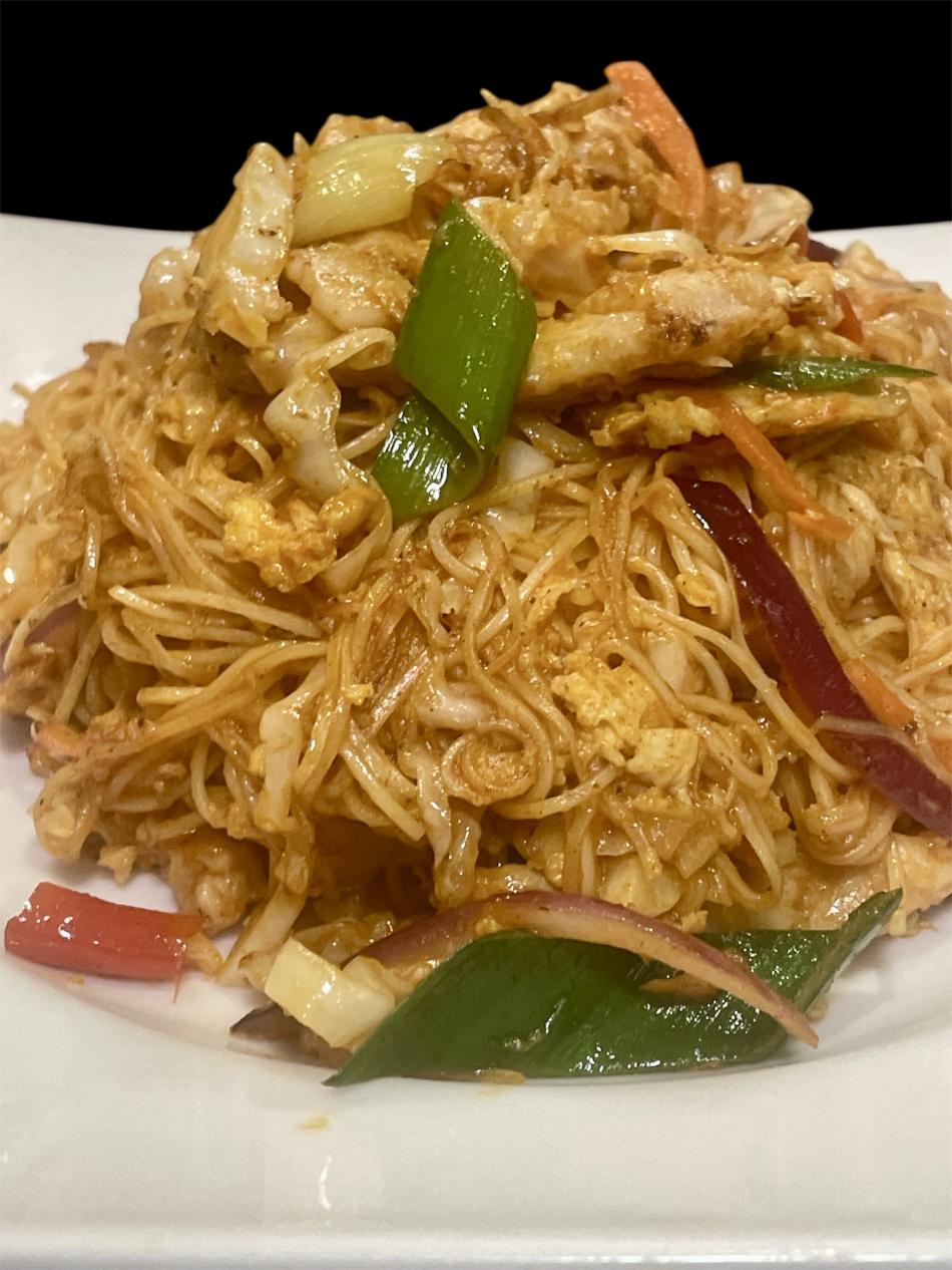 Zutaten: Zwiebeln, Lauch, Kohl, Karotten, Eier, Chili, Nudeln, Hähnchen
