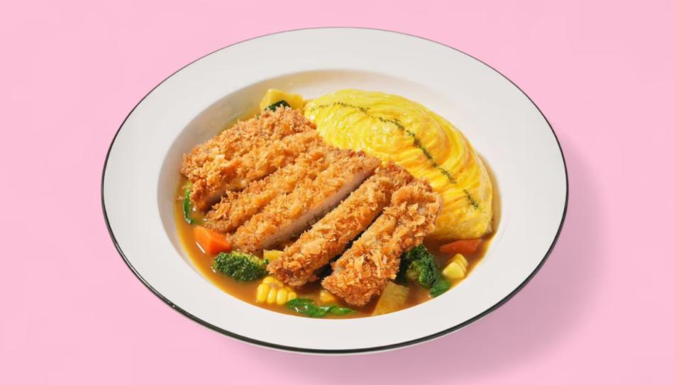 Omurice mit Curry. Omelet-Reis nach japanischer Art mit Currysauce Allergene :Eier, Milch, Soja, Glutenhaltiges Getreide