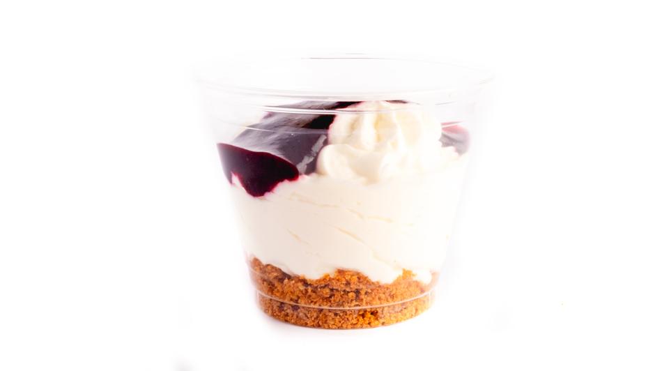 Cheesecake mit roten Beeren im Becher
