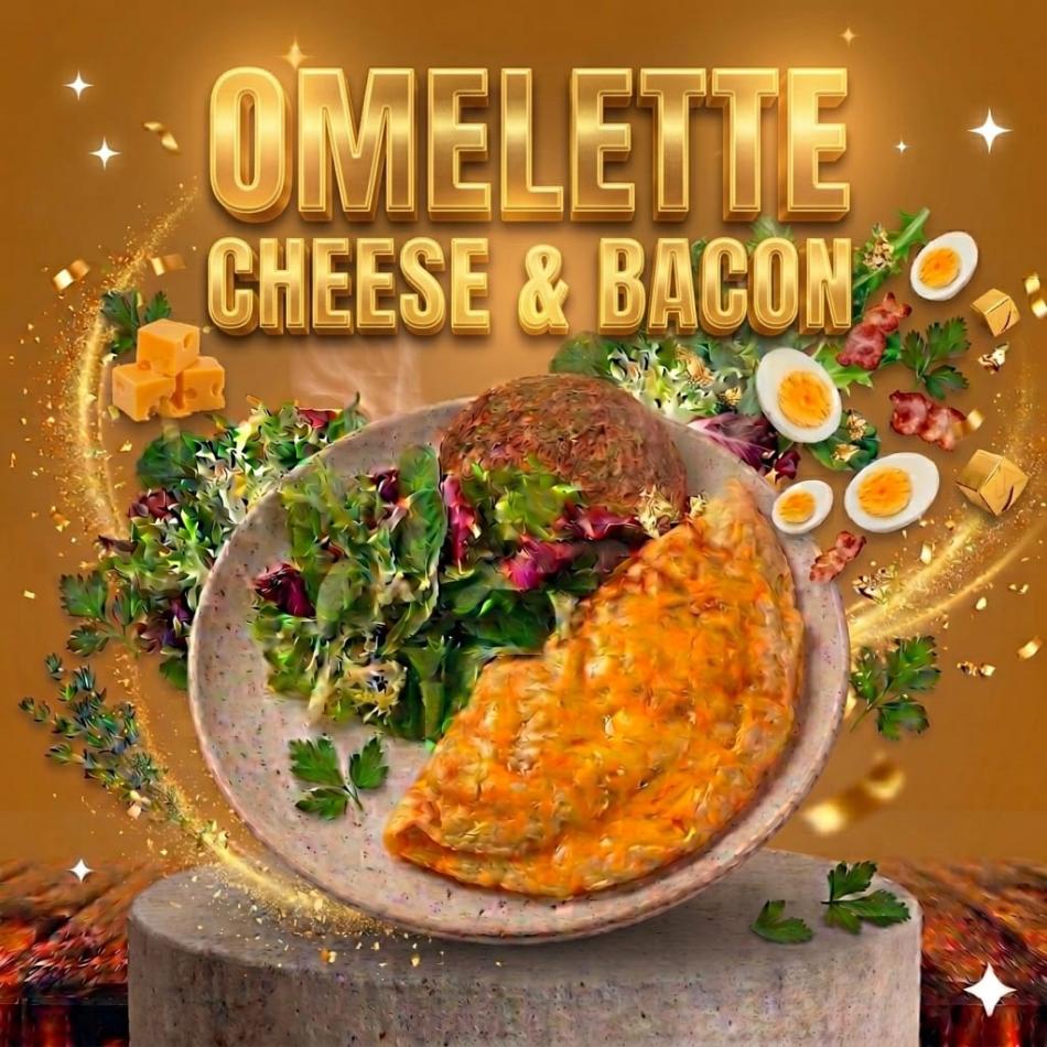 Ei, Milch, Gewürze, Rinderbacon, Cheddar-Käse, Salat, Brot