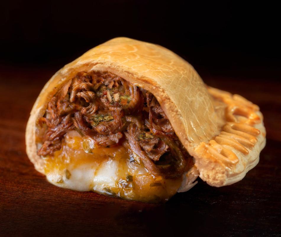 Flanksteak, Provolone-Käse, Chimichurri, karamellisierte Zwiebeln, Frühlingszwiebeln, Paprika und argentinische Gewürze.