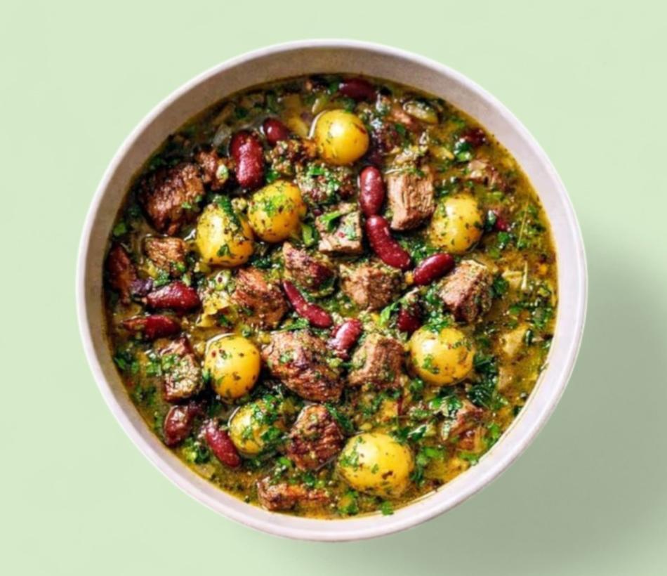 Lammfleisch, Kartoffeln, Kidneybohnen, Petersilie, Bockshornklee, Koriander, Zitrone, Zwiebeln, Kurkuma, Fleischbrühe