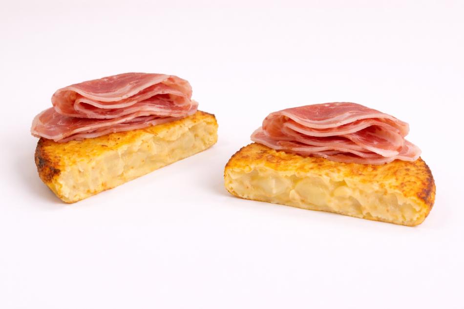 1 Mini-Tortilla (110 g) Karamellisierte Zwiebeln + 2 Stueck Serrano Schinken