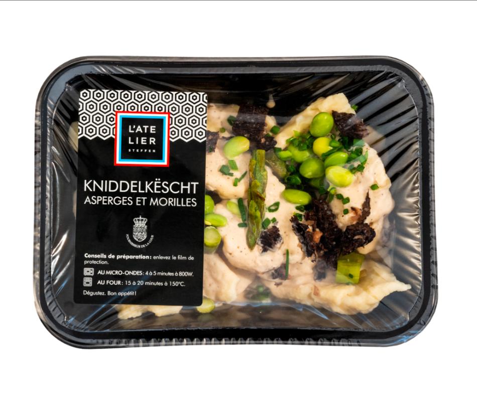 Kniddelkëscht Spargel und Morcheln