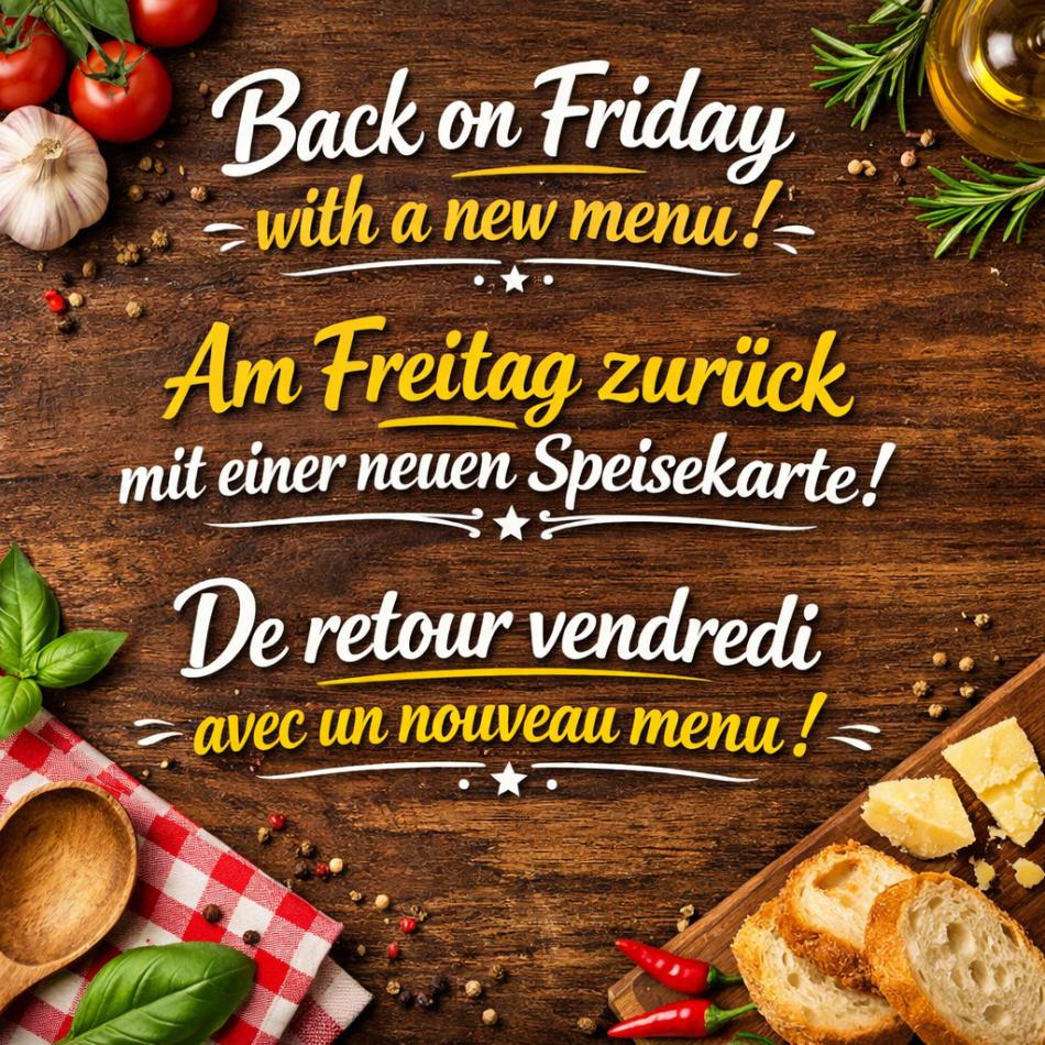 Am Freitag sind wir wieder da mit einer neuen Speisekarte!