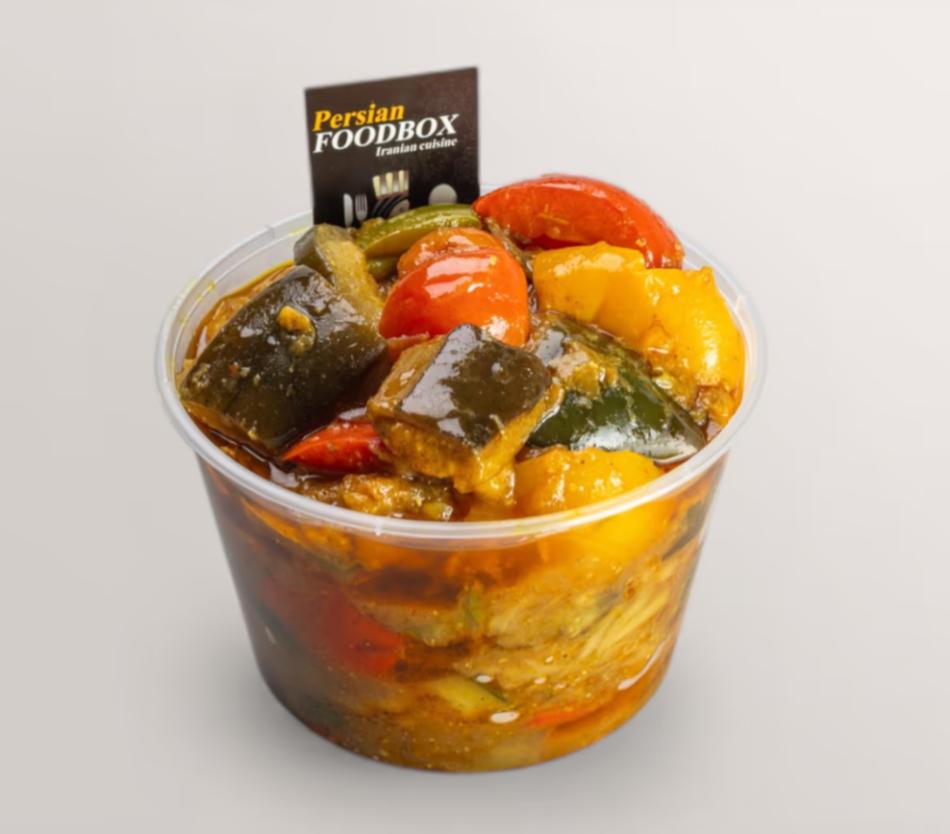 Auberginen, Zucchini, Paprika (gemischt), Kirschtomaten, iranischer Safran, Kurkuma, milde Gewürze