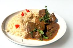Mexikanisch gewürztes Rindernetzstück mit Reis +/- 480 gr.Lieferung: