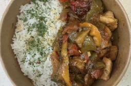 Halal-Hühnchen-Bowl aus baskischer Küche +/- 600 gr.Lieferung: