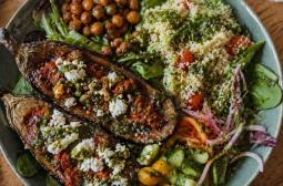 Hauptgericht des Tages - Mit rotem Pesto und Feta gefüllte AubergineLieferung: