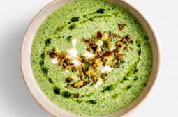 Tagessuppe: Bärlauchsuppe mit Knödeln und knusprigem Speck 450mlLieferung: